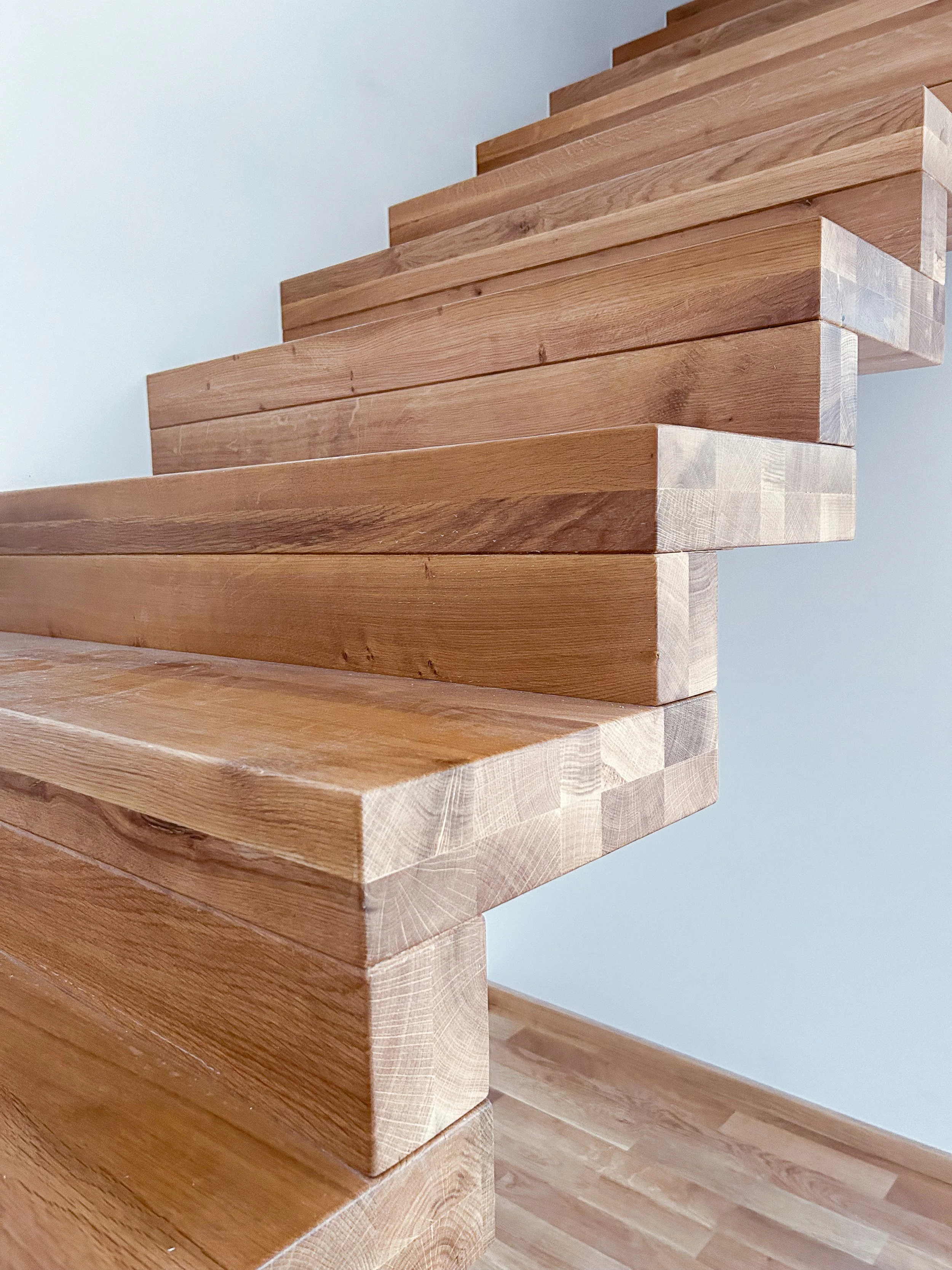 Izdelujemo samonosne in obložene betonske stopnice po meri. Masiven les, natančna izdelava in brezčasna oblika – za eleganten in trpežen korak.